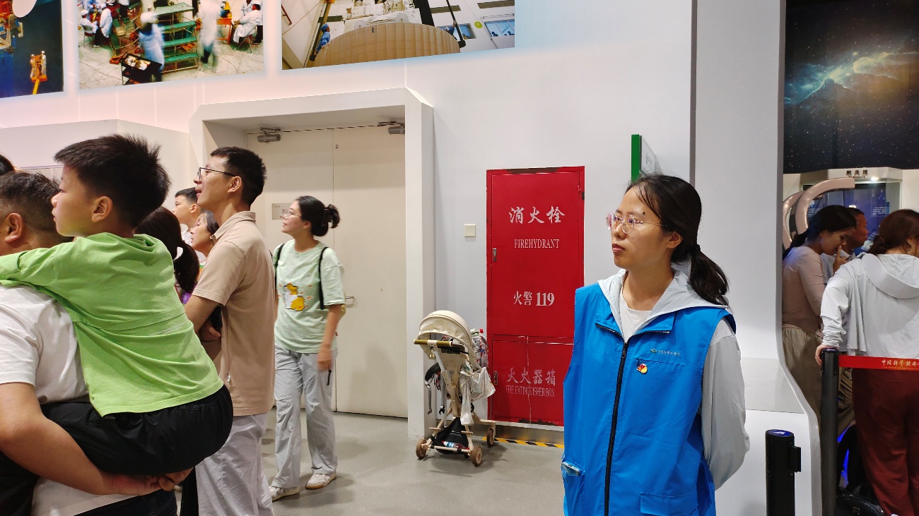 高铭遥:“作为秩序维护者,我需要引导观众有序入场、保持安全距离,并及时回应他们的疑问。看到孩子们专注的眼神、家长们欣慰的笑容,我深刻体会到科普工作的意义——它不仅传递知识,更点燃了人们对科学的好奇与热爱。或许今天某个孩子的惊叹,就是未来科学探索的起点。而我有幸成为这场科学盛宴的守护者,让更多人安全、有序地感受科学的奇妙,这本身就是一种值得骄傲的奉献。”