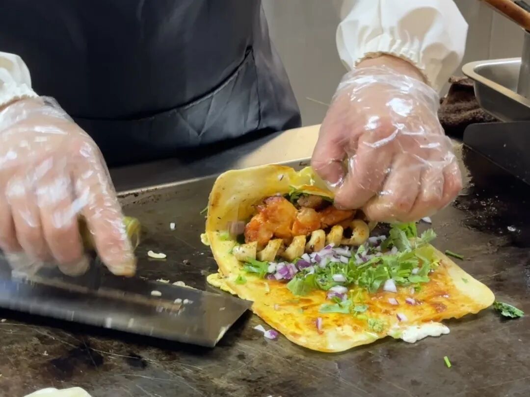 现做现卖的鸡蛋灌饼,还可以➕牛肉串烤面筋烤里脊烤鱿鱼鱼豆腐,喜欢大饼卷一切的人一口下去超满足!
