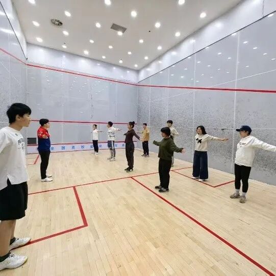 11月16日上午 ,邱德拔壁球馆迎来了一场节奏紧凑、内容充实的壁球体验活动。同学们在轻松的氛围中,完成了从零基础入门到初步对打的全过程,充分感受到壁球的速度与魅力。