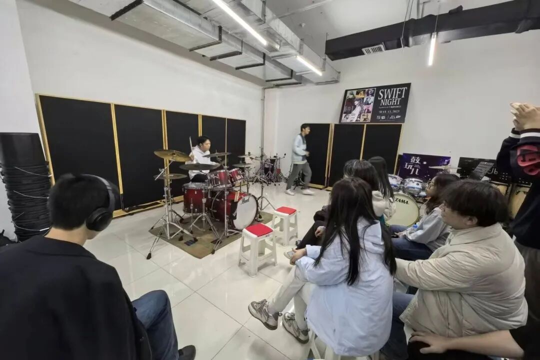 11月14日下午,学院在新太阳学生中心地下架子鼓开展体验活动。鼓槌敲击空气的清脆声响在秋日的下午响起,教室也逐渐充满了节奏和活力。