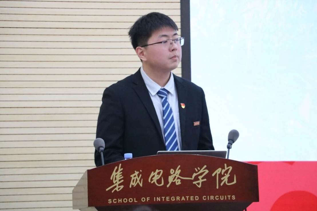 卓胜微先进技术副总裁丁永旺、技术研发总监刘俊文,集成微纳电子系安霞、魏进,集成电路设计系鲁文高、贾嵩,设计自动化与计算系统系杜刚,集成微纳系统系胡鸿杰、于民等老师出席会议并担任评委;评审由学院团委书记王凌越主持。
