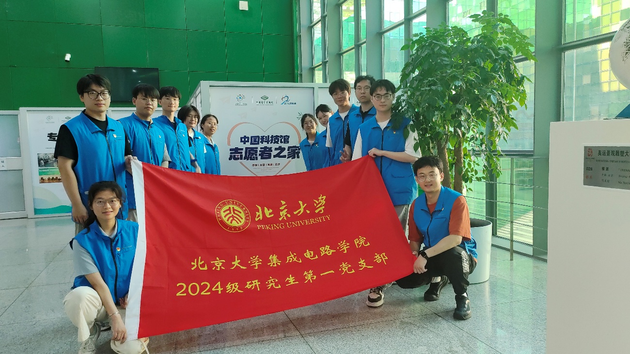 2025年7月6日,北京大学集成电路学院2024级研究生第一党支部组织赴中国科学技术馆开展“党建志愿行,共筑科技梦”主题党日活动。在为期一天的志愿服务中,12名支部成员深入科技馆各展区,承担讲解引导、秩序维护、互动协助等工作,用实际行动践行"为人民服务"的宗旨。