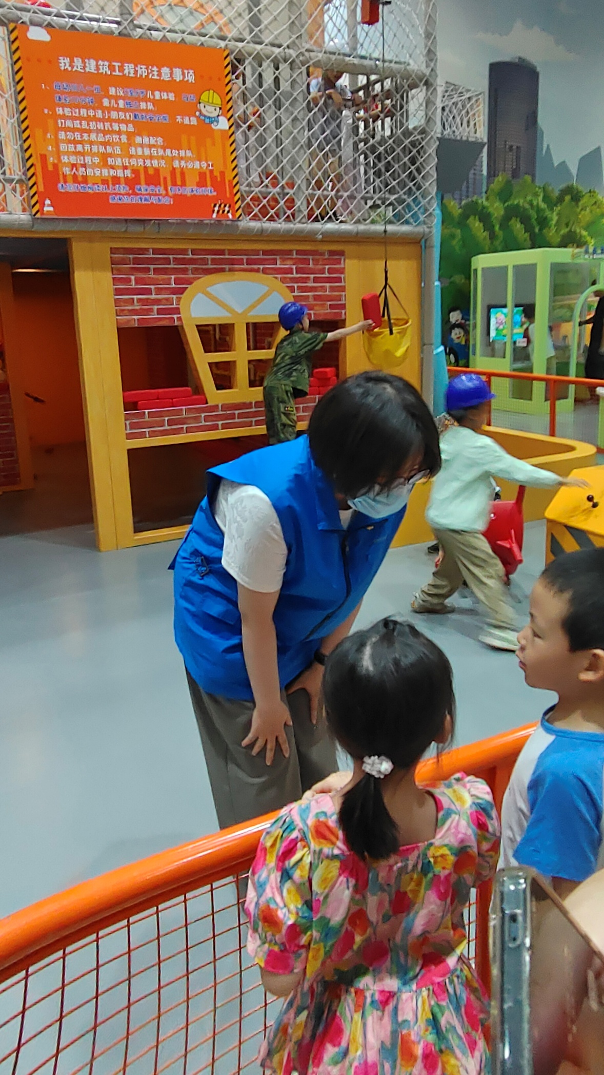 于凤君:“我担任‘我是建筑师’项目的B岗志愿者,协助工作人员维护现场安全秩序。孩子们在游玩中探索建筑工程的原理奥秘,在互相配合中培养合作精神,也在玩乐中收获了快乐与幸福。场外家长的快乐与安心让我感受到这份工作的意义,在为人民服务中感受到自我价值,也切身感受到了基层服务人员的不容易。”